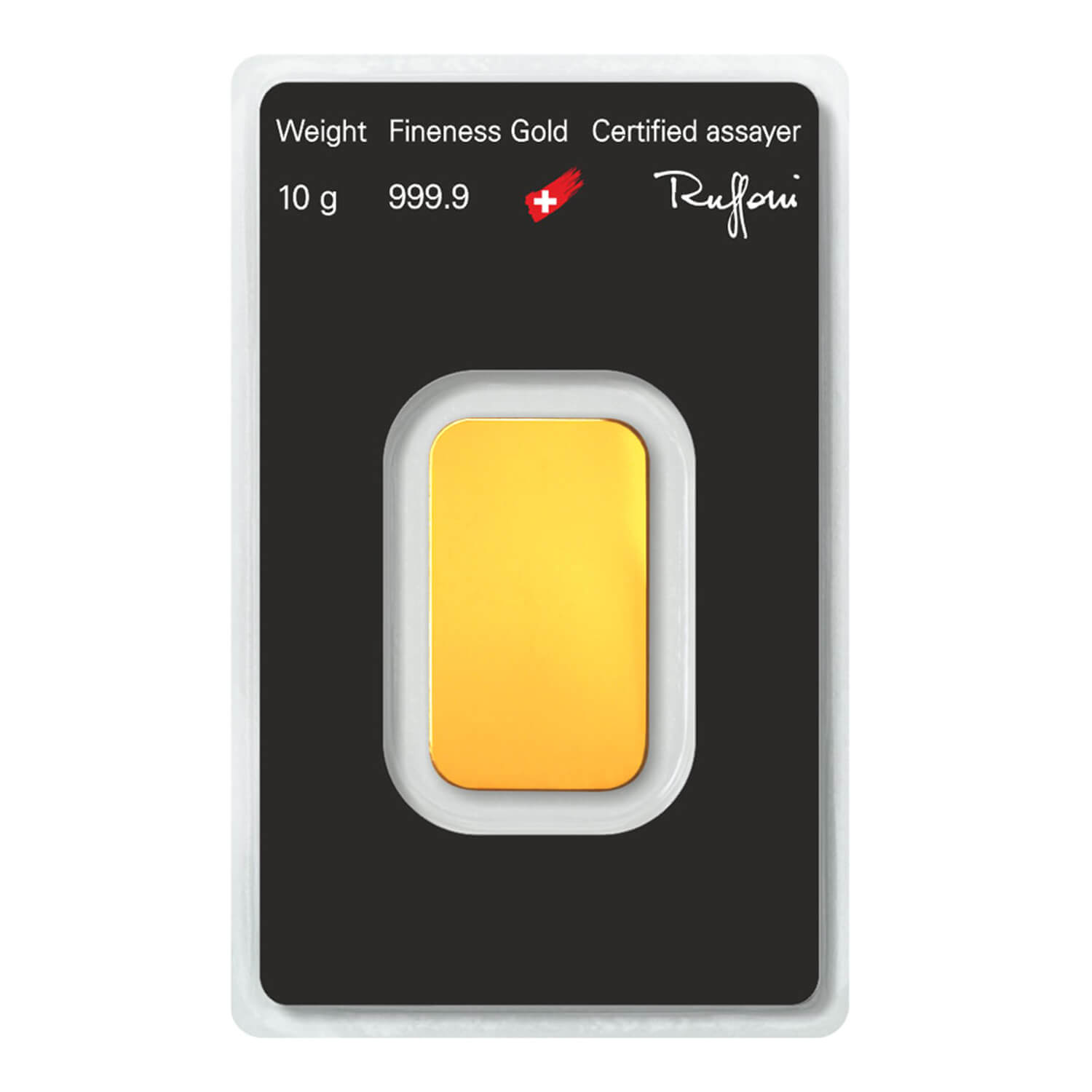 Na prednjos strani zlatne poluge nalazi se logo Argor Heraeus kovnice, a zatim težina, finoća i serijski broj pločice. Zlatna poluga Argor Heraeus od 10 grama dolazi zapečaćena u sigurnosnoj blister foliji kako bi se spriječilo oštećenje.